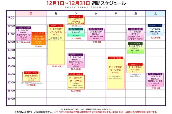 【12月のスケジュール】 各日の正確なスケジュールはWEB予約をご確認くださいま...
